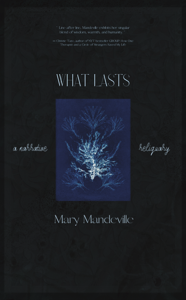 "In What Lasts, A Narrative Reliquary, Mary Mandeville offers readers a delicate, exquisitely rendered glimpse of her heart, where memory, tenderness, and motherhood swirl in gorgeous, aching combinations. Mandeville writes with a poet's precision, navigating the intimate terrain of loving, healing, losing, letting go, and witnessing. Line after line, Mandeville exhibits her singular blend of wisdom, warmth, and humanity. What Lasts touched the deepest parts of me—both healed and unhealed—and I'm grateful Mandeville offers her light to all of us through these beautiful pages."